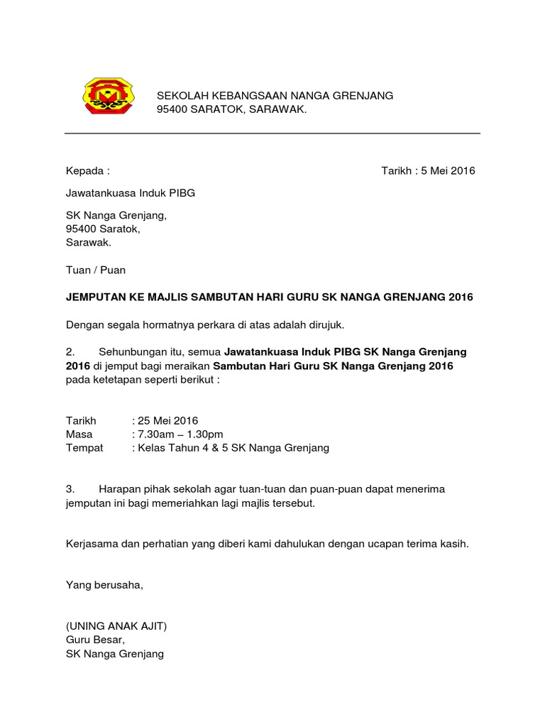 Contoh kad jemputan hari guru. Pegawai tidak mengetik waktu masuk serta terus ke tempat bertugas rasminya. Format Contoh Surat Rasmi Jemputan Hari Raya Terbaik 2019.